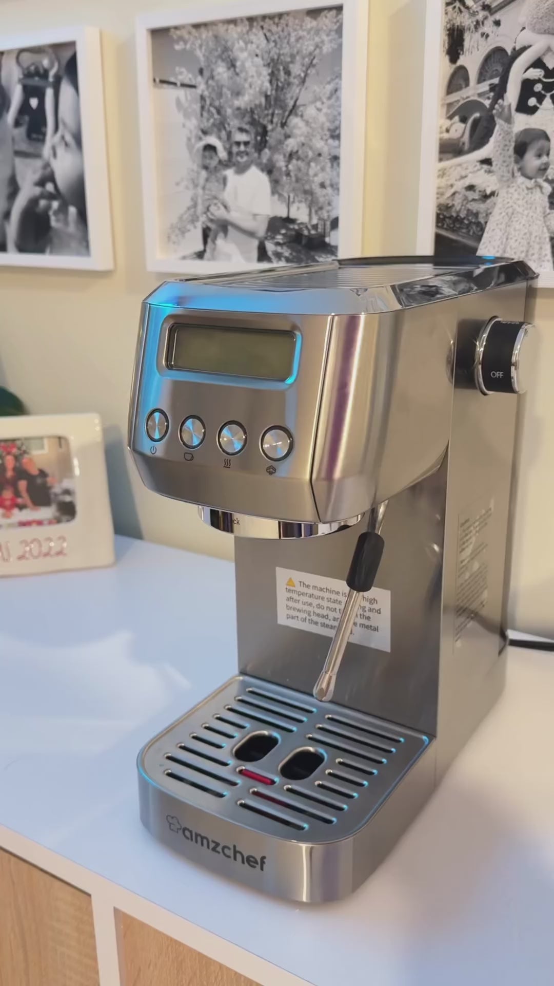 AMZCHEF Compact Latte Machine with Visual LCD 20 Bar Coffee Machine